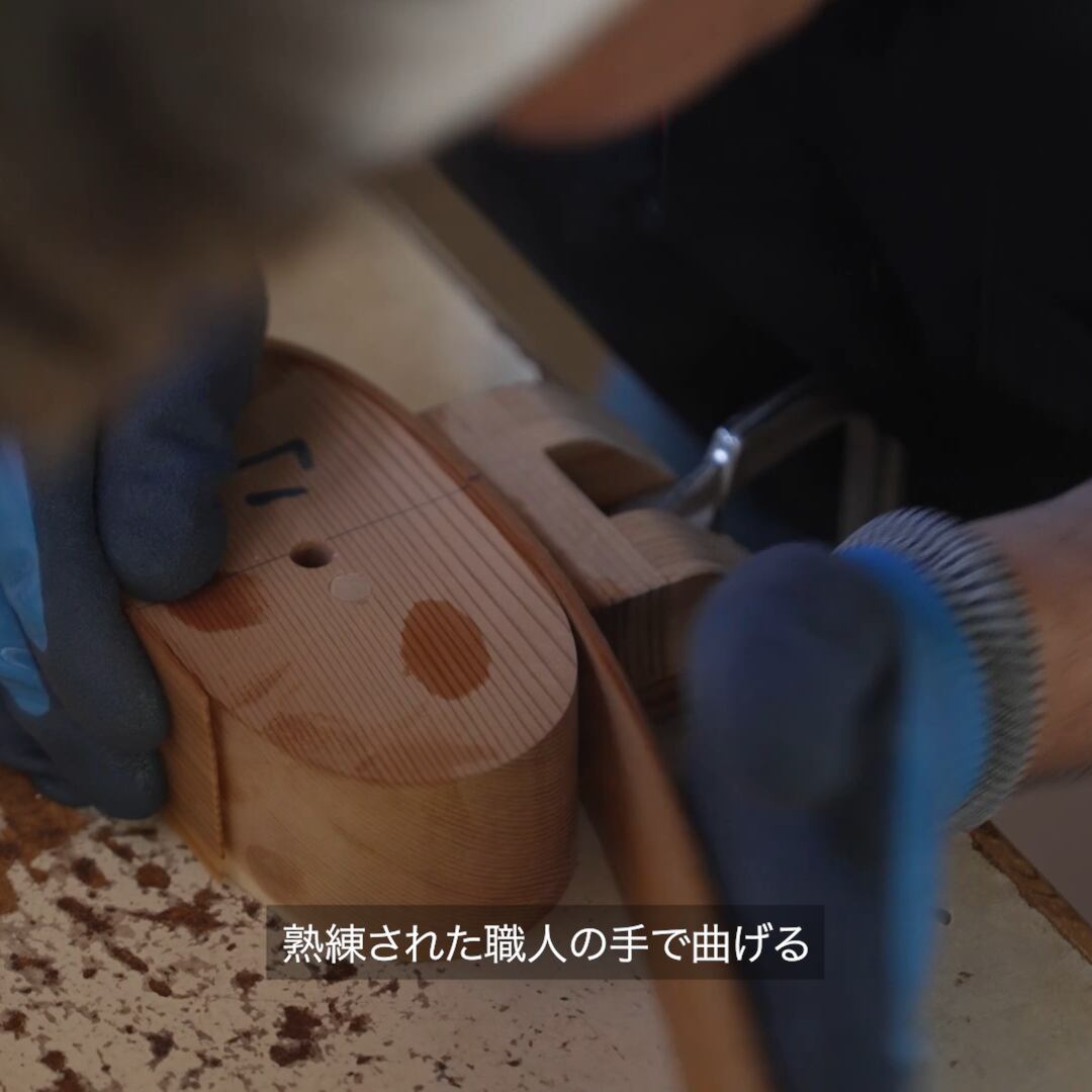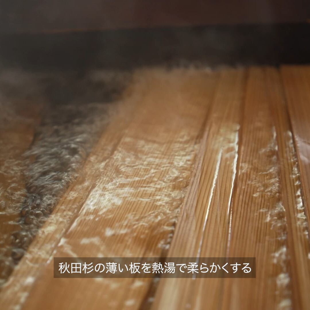 秋田杉の薄板を熱で曲げ、桜皮で丁寧に綴じて作られています。