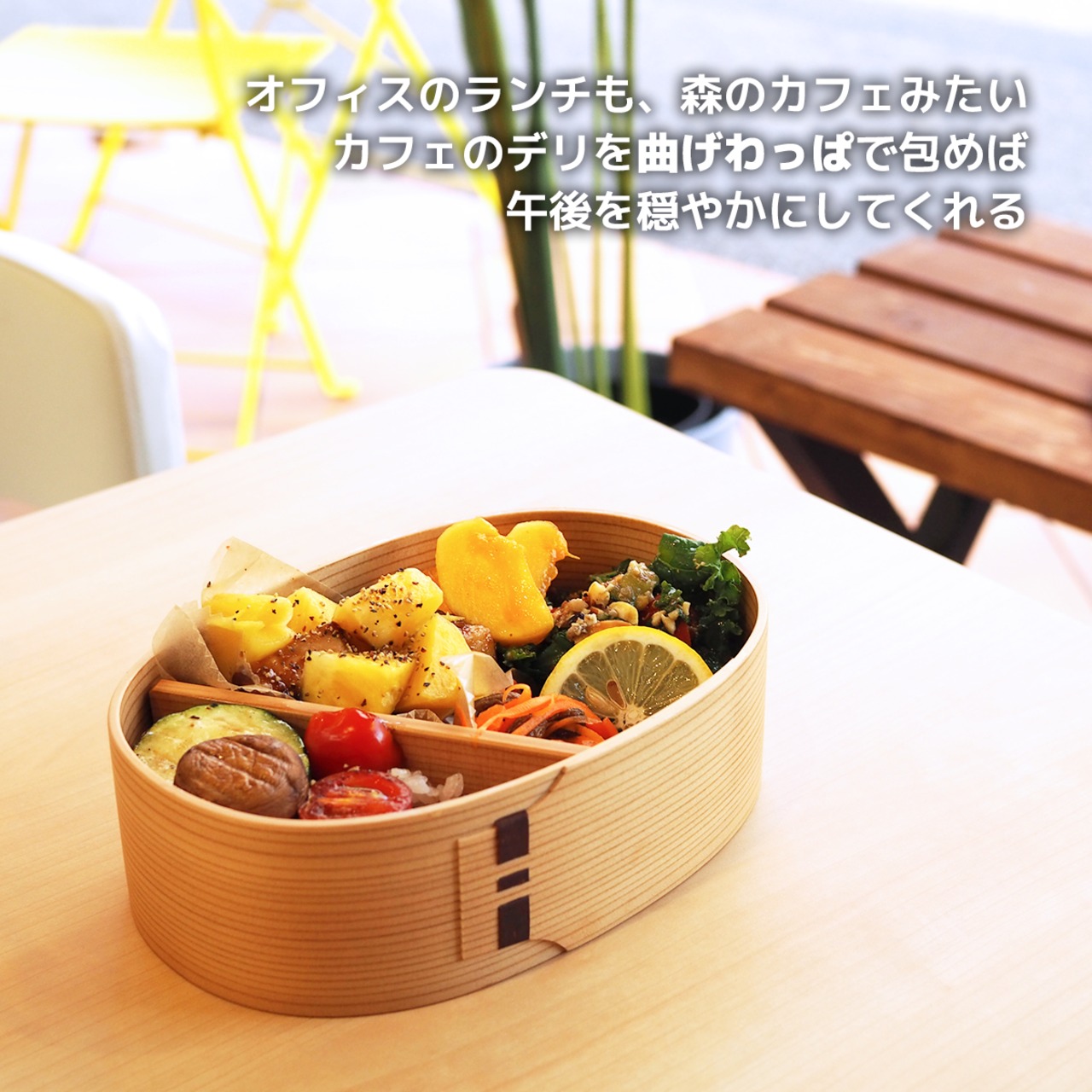 曲げわっぱに詰めるだけで、いつものテイクアウトが少し特別なものになります。